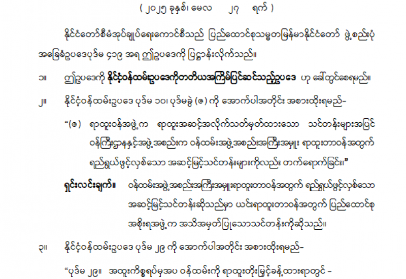 နိုင်ငံ့ဝန်ထမ်းဥပဒေကို တတိယအကြိမ် ပြင်ဆင်သည့် ဥပဒေ