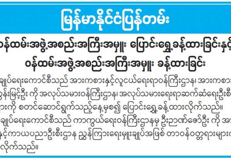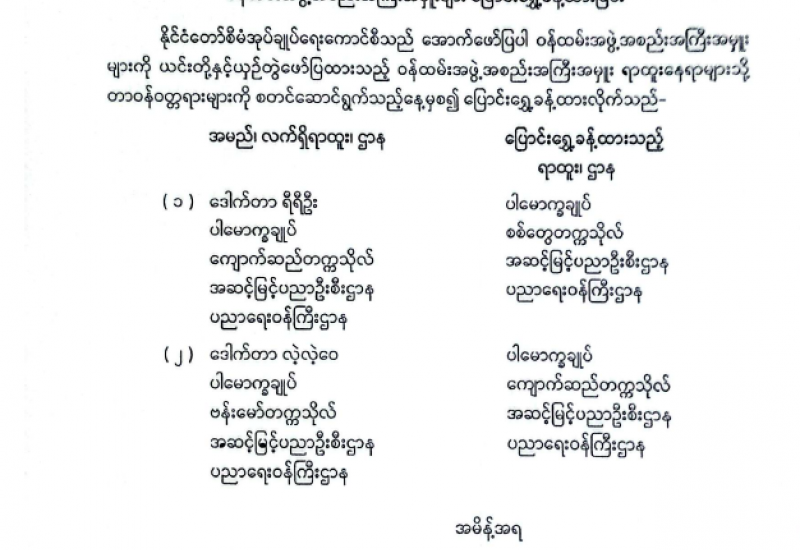 ဝန်ထမ်းအဖွဲ့အစည်းအကြီးအမှူးများ ပြောင်းရွှေ့ခန့်ထားခြင်း