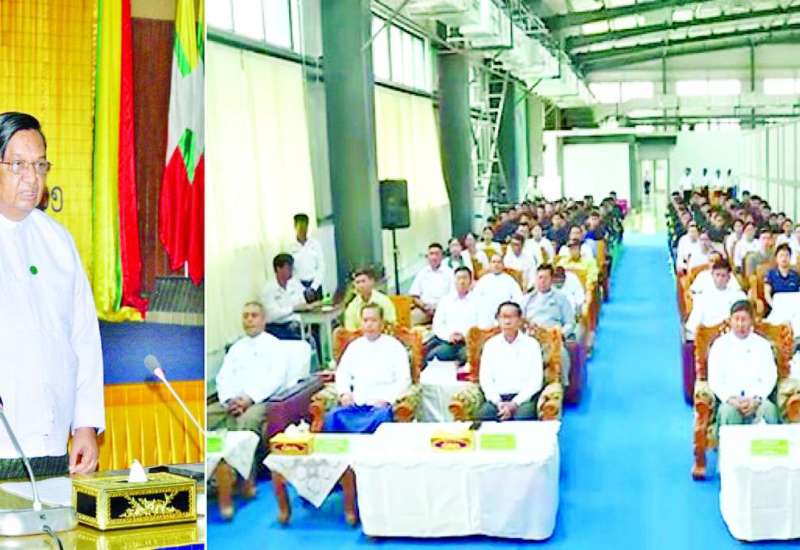 ကလောအနည်ကျချိုင့်ဝှမ်း (Kalaw Basin) အတွင်းရေနံနှင့် သဘာဝဓာတ်ငွေ့ ခိုအောင်းနိုင်သည့်နေရာများ ရှာဖွေဖော်ထုတ်နိုင်ရေး ပထမအကြိမ်ပဏာမစူး စမ်းလေ့လာခြင်းလုပ်ငန်းကွင်းဆင်း ဆောင်ရွက်ကြမည့် ပူးပေါင်းအဖွဲ့များအား တွေ့ဆုံအားပေးခြင်းနှင့် စခန်းချအောင်နိုင်ရေး အလံပေးအပ်ခြင်းအခမ်းအနားကို ယနေ့နံနက်ပိုင်းက စွမ်းအင် ဝန်ကြီးဌာန ရတနာခန်းမ၌ ကျင်းပသည်။