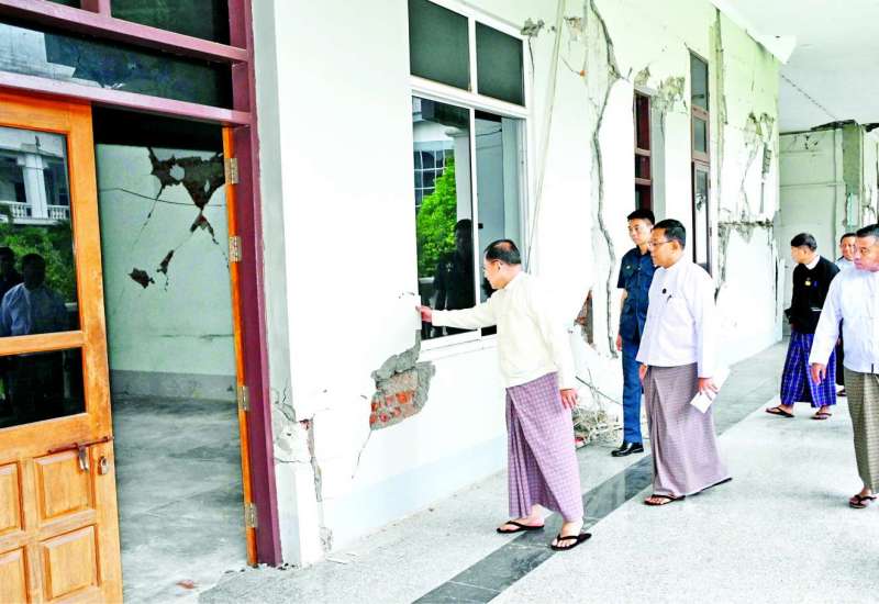 မန္တလေးငလျင်ကြီးကြောင့် ထိခိုက်ပျက်စီးမှုများဖြစ်ပေါ်ခဲ့သည့် ပြည်ထောင်စုတရားလွှတ်တော်ချုပ်ရုံးအဆောက်အဦနှင့် အလုပ်သမားဝန်ကြီးဌာန ရုံးအဆောက်အဦတို့အား နိုင်ငံတော်စီမံအုပ်ချုပ်ရေးကောင်စီဥက္ကဋ္ဌ နိုင်ငံတော်ဝန်ကြီးချုပ် ဗိုလ်ချုပ်မှူးကြီး မင်းအောင်လှိုင်သည် ကောင်စီတွဲဖက်အတွင်းရေးမှူး ဗိုလ်ချုပ်ကြီး ရဲဝင်းဦး၊ ပြည်ထောင်စုဝန်ကြီးများ၊ နေပြည်တော်ကောင်စီဥက္ကဋ္ဌနှင့် တာဝန်ရှိသူများ လိုက်ပါ၍ ယနေ့ညနေပိုင်းတွင် သွားရောက်ကြည့်ရှုစစ်ဆေးသည်။