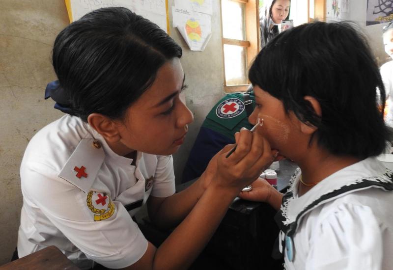မြန်မာနိုင်ငံကြက်ခြေနီအသင်းမှ ကြက်ခြေနီစေတနာ လုပ်အားရှင်များနှင့်အတူ ကိုရီးယား ကြက်ခြေနီလူငယ်များသည် ယမန်နေ့တွင် ရန်ကုန်တိုင်းဒေသကြီး သန်လျင်မြို့နယ်ရှိ ကျိုက်အင်းအခြေခံပညာ မူလတန်းလွန်ကျောင်း၌ ကျောင်းသား၊ ကျောင်းသူများနှင့် တွေ့ဆုံသည်။