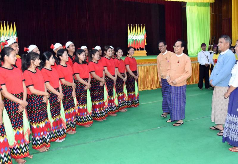 ကချင်ပြည်နယ်ဝန်ကြီးချုပ် ဒေါက်တာခက်အောင်သည် နေပြည်တော်၌ ကျင်းပမည့် (၇၃)နှစ်မြောက် ပြည်ထောင်စုနေ့အခမ်းအနားသို့ သွားရောက်ပါဝင်ဆင်နွှဲကြမည့် တိုင်းရင်းသားရိုးရာအကအဖွဲ့များအား ဇန်နဝါရီ ၃၁ ရက် ညနေပိုင်းတွင် မြစ်ကြီးနားမြို့ မြို့တော်ခန်းမ၌ သွားရောက်တွေ့ဆုံအားပေးခဲ့သည်။