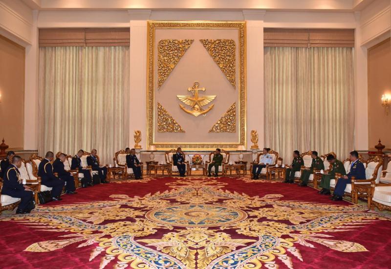 တပ်မတော်ကာကွယ်ရေးဦးစီးချုပ် ဗိုလ်ချုပ်မှူးကြီး မင်းအောင်လှိုင်သည် ထိုင်းဘုရင့် လေတပ်ဦးစီးချုပ် Air Chief Marshal Maanat Wongwat အား ယနေ့ နံနက်ပိုင်းတွင် နေပြည်တော်ရှိ ဇေယျာသီရိဗိမာန် ဧည့်ခန်းမဆောင်၌ လက်ခံ တွေ့ဆုံသည်။