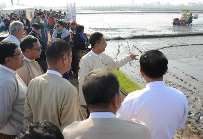 SRI ကောက်စိုက်စက် (Minoru RX61) ဖြင့် စပါးမျိုးသစ်များ စိုက်ပျိုးသရုပ်ပြပွဲနှင့် စိုက်ပျိုးရေးသုတေသနဦးစီးဌာန၏ (၁၆) နှစ်ပြည့် အထိမ်းအမှတ် အခမ်းအနားများကို ယနေ့နံနက် ၈ နာရီတွင် နေပြည်တော်ရှိ ရေဆင်းစိုက်ပျိုးရေးသုတေသနဦးစီးဌာန၌ ကျင်းပသည်။