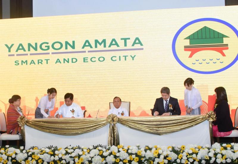Yangon Amata Smart and Eco City စီမံကိန်းအတွက် ဆောက်လုပ်ရေး ဝန်ကြီးဌာန မြို့ပြနှင့်အိမ်ရာ ဖွံ့ဖြိုးရေးဦးစီးဌာနနှင့် Amata Asia (Myanmar) Limited တို့အကြား ဖက်စပ်လုပ်ငန်း သဘောတူစာချုပ်နှင့် မြို့ပြနှင့်အိမ်ရာဖွံ့ဖြိုးရေး ဦးစီးဌာနနှင့် Yangon Amata Smart and Eco City Limited တို့အကြား မြေငှားစာချုပ် လက်မှတ်ရေးထိုးပွဲ အခမ်းအနားကို ယနေ့နံနက် ၉ နာရီတွင် နေပြည်တော်ရှိ Kempinski ဟိုတယ်၌ ကျင်းပသည်။