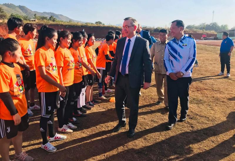 အမေရိကန်သံရုံးနှင့် မြန်မာနိုင်ငံဘောလုံးအဖွဲ့ချုပ်တို့ ပူးပေါင်းကျင်းပသော Community Champions Follow- UPS, Soccer, Clinic ဘောလုံးသင်တန်းဖွင့်ပွဲကို ယမန်နေ့ ညနေ ၃ နာရီက ရှမ်းပြည်နယ်(တောင်ပိုင်း)၊ တောင်ကြီးမြို့နယ်၊ အေးသာယာမြို့၊ သစ်ပင်ထောင်ရပ်ကွက်ရှိ အားကစားနှင့် ကာယပညာသိပ္ပံ(တောင်ကြီး)ကျောင်း၌ ကျင်းပသည်။