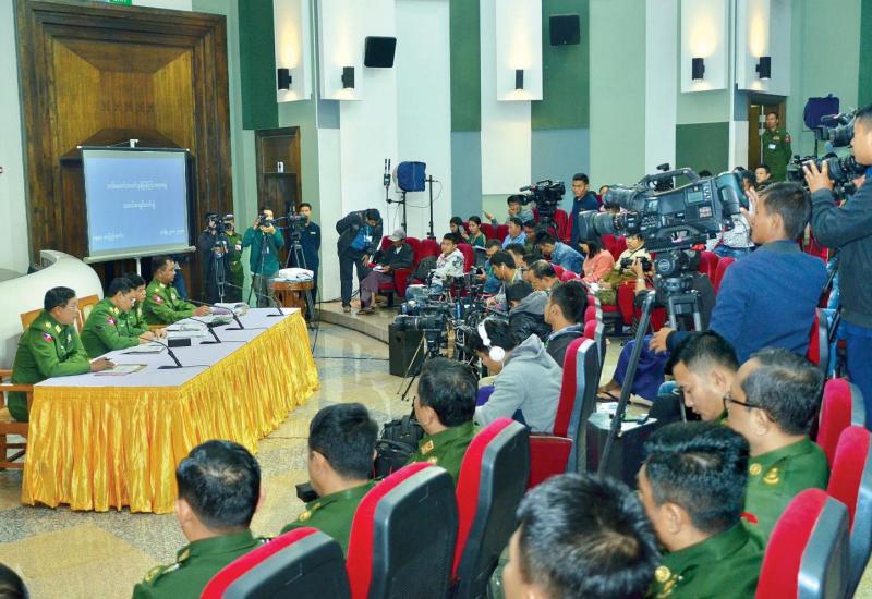 တပ်မတော်သတင်းစာရှင်းလင်းပွဲကို ယနေ့နံနက်ပိုင်းတွင် နေပြည်တော်ရှိ တပ်မတော်စစ်သမိုင်းပြတိုက်၌ ပြုလုပ်သည်။