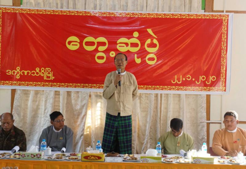 ကယားပြည်နယ်အတွင်းရှိ ဆွစ်ဇာလန်နိုင်ငံမှ အထောက်အပံ့ဖြင့် အကောင်အထည်ဖော် ဆောင်ရွက်လျက် ရှိသည့် Humanitarian Mine Action ဆိုင်ရာ ကိစ္စရပ်များ၊ ဆွစ်ဇာလန် အစိုးရမှ အထောက်အပံ့များ ပေးအပ်လိုသည့် ကိစ္စရပ်များနှင့် စပ်လျဉ်း၍ ဆွေးနွေးဆောင်ရွက်နိုင်ရန်အတွက် ကယားပြည်နယ် အစိုးရအဖွဲ့ ပြည်နယ်ဝန်ကြီးချုပ် ဦးအယ်လ်ဖောင်းရှိုနှင့် တာဝန်ရှိ သူတို့အား ယနေ့နံနက် ၈ နာရီခွဲက ရန်ကုန်မြို့ရှိ ဆွစ်ဇာလန် သံရုံးမှ သံအမတ် Mr . Thierry Umbehr နှင့် အဖွဲ့တို့က လာရောက် တွေ့ဆုံသည်။