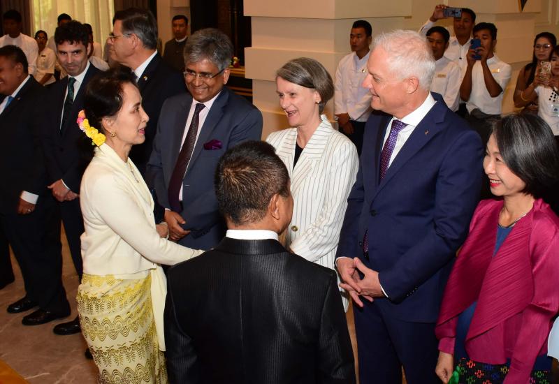 နိုင်ငံတော်၏အတိုင်ပင်ခံပုဂ္ဂိုလ် ဒေါ်အောင်ဆန်းစုကြည်သည် ယနေ့မွန်းလွဲပိုင်းတွင် နေပြည်တော်ရှိ Hilton Hotel ၌ ကျင်းပသည့် မြန်မာနိုင်ငံဆိုင်ရာ နိုင်ငံတကာသံတမန်များကိုယ်စား သံတမန်များအဖွဲ့နာယက တီမောလက်စ်တေ သံအမတ်ကြီး မစ္စတာ ဂျူဝေါင်း ဖရေးတက်စ် ဒေ ကာမာရာ က တည်ခင်းဧည့်ခံသည့် နှစ်သစ်ကူးအခါသမယနှင့် ပြည်ထောင်စုသမ္မတမြန်မာနိုင်ငံတော်၏ (၇၂)နှစ်မြောက် လွတ်လပ်ရေးနေ့အခါသမယကို ကြိုဆိုသည့် ဂုဏ်ပြုနေ့လယ်စာစားပွဲသို့ တက်ရောက်သည်။