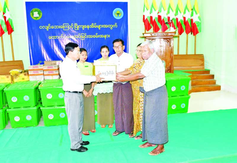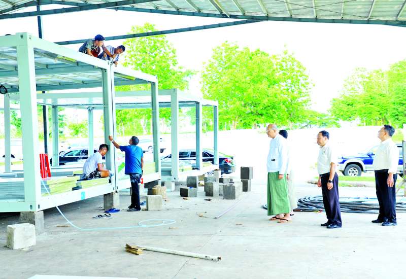 သမဝါယမနှင့်ကျေးလက်ဖွံ့ဖြိုးရေးဝန်ကြီးဌာန ပြည်ထောင်စုဝန်ကြီး ဦးလှမိုးသည် ဒုတိယဝန်ကြီးဦးမြင့်စိုးနှင့်အတူ ယနေ့ညနေပိုင်းက ငလျင်ဒဏ်သင့်ခဲ့သည့် ဝန်ထမ်းများအတွက် တည်ဆောက်ပြီးစီးခဲ့သည့် ယာယီဘာရှာလိုင်းခန်းများ၌ ပြောင်းရွှေ့နေထိုင်မှုများကို ကြည့်ရှုစစ်ဆေးသည်။