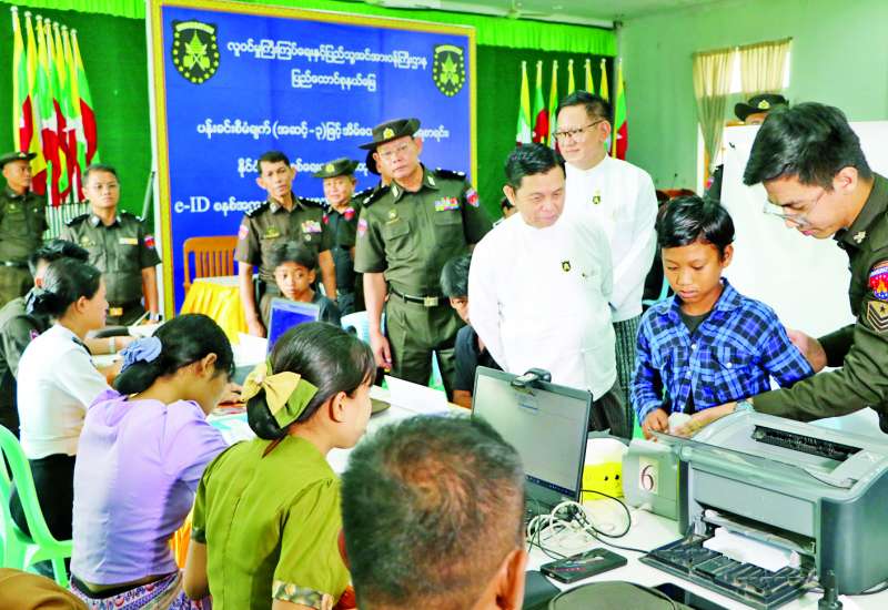 လူဝင်မှုကြီးကြပ်ရေးနှင့် ပြည်သူ့အင်အားဝန်ကြီးဌာန ပြည်ထောင်စုဝန်ကြီး ဦးမြင့်ကြိုင်သည် ဒုတိယဝန်ကြီး ဒေါက်တာမျိုးသန့်နှင့်အတူ ယနေ့နံနက်ပိုင်းက နေပြည်တော်ကောင်စီနယ်မြေ ဇေယျာသီရိမြို့နယ် လူဝင်မှုကြီးကြပ်ရေးနှင့် ပြည်သူ့အင်အားဝန်ကြီးဌာန မြို့နယ်ဦးစီးမှူးရုံးသို့ သွားရောက်၍ စုပေါင်းရုံးအစည်းအဝေးခန်းမ၌ ဝန်ထမ်းများက အိမ်ထောင်စုလူဦးရေစာရင်းနှင့် နိုင်ငံသားစိစစ်ရေး ကတ်ပြားပျက်စီး/ပျောက်ဆုံးသွားသည့် ဒေသခံပြည်သူများနှင့် နိုင်ငံသားစိစစ်ရေးကတ်ပြား မရရှိသေးသူများအား ပန်းခင်းစီမံချက်အဆင့်(၃)ဖြင့် ဆောင်ရွက်ပေးနေမှုကို ကြည့်ရှုအားပေးသည်။