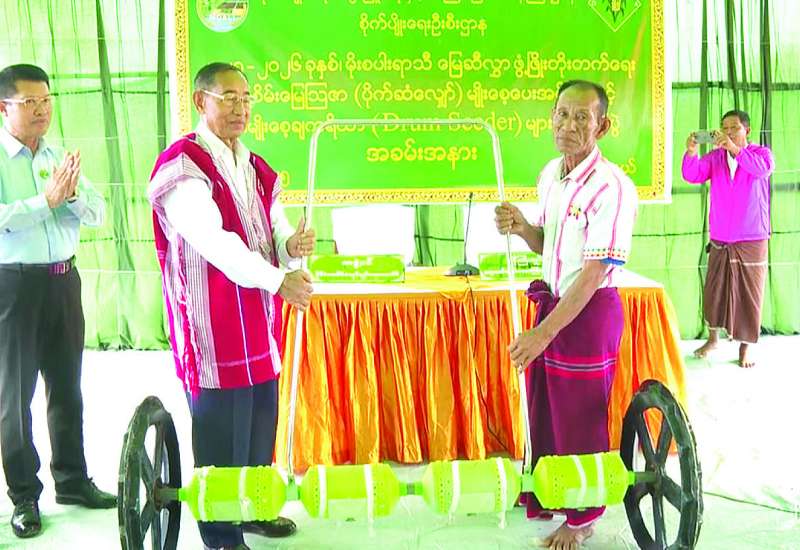 နိုင်ငံတော်စီမံအုပ်ချုပ်ရေးကောင်စီအဖွဲ့ဝင် မန်းငြိမ်းမောင်သည် ဧရာဝတီတိုင်းဒေသကြီး ဝန်ကြီးချုပ် ဦးတင်မောင်ဝင်း၊ တိုင်းဒေသကြီး အစိုးရအဖွဲ့ဝင်များ၊ တာဝန်ရှိသူများနှင့်အတူ ယနေ့နံနက်ပိုင်းတွင် ဖျာပုံခရိုင် ဖျာပုံမြို့နယ် အောက်ကွင်းကြီးမျိုးသန့်ခြံ၌ ပြုလုပ်သော ၂၀၂၅-၂၀၂၆ ခုနှစ် မိုးစပါးရာသီမြေဆီလွှာဖွံ့ဖြိုးတိုးတက်ရေး သစ်စိမ်းမြေဩဇာ (ပိုက်ဆံလျှော်) မျိုးစေ့ပေးအပ်ခြင်းနှင့် စပါးမျိုးစေ့ချကိရိယာ (Drum Seeder) များ ပေးအပ်ပွဲအခမ်းအနားသို့ တက်ရောက်သည်။