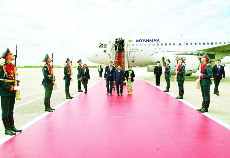 ရုရှားဖက်ဒရေးရှင်းနိုင်ငံသမ္မတ မစ္စတာ ဗလာဒီမာပူတင်၏ ဖိတ်ကြားချက်အရ ရုရှားဖက်ဒရေးရှင်းနိုင်ငံတွင် ကျင်းပပြုလုပ်မည့် ၁၉၄၁-၁၉၄၅ မဟာမျိုးချစ် စစ်ပွဲကြီးအောင်ပွဲ နှစ်(၈၀)ပြည့် အထိမ်းအမှတ်စစ်ရေးပြအခမ်းအနားသို့ တက်ရောက်ရန်အတွက် နိုင်ငံတော်စီမံအုပ်ချုပ်ရေးကောင်စီဥက္ကဋ္ဌ နိုင်ငံတော်ဝန်ကြီးချုပ် ဗိုလ်ချုပ်မှူးကြီး မင်းအောင်လှိုင်နှင့် ဇနီး ဒေါ်ကြူကြူလှ ဦးဆောင်သည့် မြန်မာအဆင့်မြင့် ကိုယ်စားလှယ်အဖွဲ့သည် ယနေ့နံနက်ပိုင်းတွင် အထူးလေယာဉ်ဖြင့် နေပြည်တော်တပ်မတော်လေဆိပ်မှ ထွက်ခွာသည်။