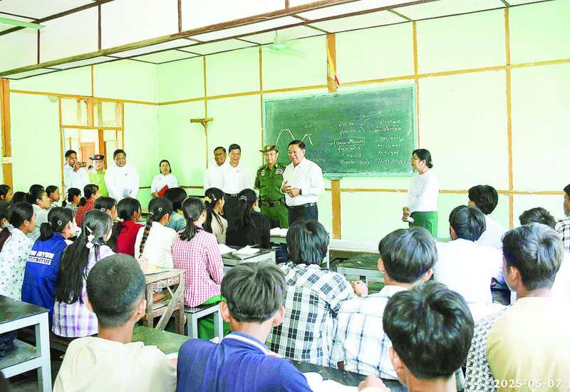 အမျိုးသားလုံခြုံရေးဆိုင်ရာ အကြံပေးပုဂ္ဂိုလ်နှင့် ပြည်ထောင်စုဝန်ကြီး ဗိုလ်ချုပ်ကြီး မိုးအောင်သည် တာဝန်ရှိသူများနှင့်အတူ ယနေ့တွင် မန္တလေးတိုင်းဒေသကြီး ကျောက်ဆည်မြို့ အမှတ် (၃) အခြေခံပညာအထက်တန်းကျောင်းနှင့် အမှတ် (၁) အခြေခံပညာအထက်တန်းကျောင်း၊ စဉ့်ကိုင်မြို့ အခြေခံပညာအထက်တန်းကျောင်း၊ချမ်းအေးသာစံမြို့ အမှတ် (၁၆) အခြေခံပညာအထက်တန်းကျောင်းနှင့် အမှတ် (၁) အခြေခံပညာအထက်တန်းကျောင်းတို့တွင် စခန်းသွင်းသင်ကြားလေ့ကျင့်နေသည့် တက္ကသိုလ်ပါမောက္ခ၊ ဆရာ ဆရာမများနှင့် အခြေခံပညာဆရာ ဆရာမများ၊ ၂၀၂၅ ခုနှစ် တက္ကသိုလ်ဝင်စာမေးပွဲပြန်လည် ဖြေဆိုမည့် ကျောင်းသား ကျောင်းသူများကို တွေ့ဆုံအားပေးသည်။