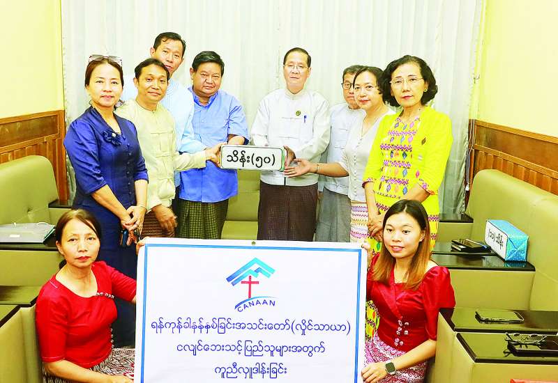 မန္တလေးငလျင်ဘေးသင့် ဝန်ထမ်းများအတွက် လိုအပ်သည့်ထောက်ပံ့မှုများနှင့် ပြန်လည်ထူထောင်ရေးလုပ်ငန်းများ ဆောင်ရွက်နိုင်ရန် ရန်ကုန်ခါနန်တရုတ်နှစ်ခြင်းအသင်းတော်က ငွေကျပ် သိန်း ၅၀၊ ဆန်နှစ်ပြည်အိတ် ၅၀ နှင့် မြန်မာနိုင်ငံခရစ်ယာန်ဂိုဏ်းပေါင်းစုံ ငြိမ်းချမ်းရေးအထောက် အကူပြုဗဟိုကော်မတီက ငွေကျပ် ၁၀ သိန်းတို့ကို ယနေ့မွန်းလွဲပိုင်းတွင် လူမှုဝန်ထမ်း၊ ကယ်ဆယ်ရေးနှင့်ပြန်လည်နေရာ ချထားရေးဝန်ကြီးဌာန သဘာဝဘေးအန္တရာယ်ဆိုင်ရာ စီမံခန့်ခွဲမှုဗဟိုဌာန DMC ရုံး၌ ပေးအပ်လှူဒါန်းသည်။