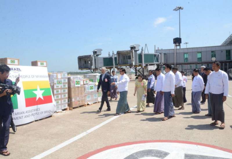 မြန်မာနိုင်ငံတွင် ဖြစ်ပွားခဲ့သည့် မန္တလေးမြေငလျင်ကြီးကြောင့် ထိခိုက်ပျက်စီးဆုံးရှုံးမှုများ ဖြစ်ပေါ်ခဲ့သည့် ငလျင်ဒဏ်သင့်ဒေသများအတွက် ဘရာဇီးလ်ဖက်ဒရယ်သမ္မတနိုင်ငံမှ လှူဒါန်းသော ကျန်းမာရေး အထောက်အကူပြုပစ္စည်းများ၊ အာဟာရပြည့်အစားအစာခြောက်များ၊ ရေသန့်စက်များ တင်ဆောင်လာသည့် Korean Air လေကြောင်းမှ Airbus A330-300 အမျိုးအစားလေယာဉ်သည် မေ ၅ ရက် ည ၇ နာရီ ၃၀ မိနစ်တွင် ကိုရီးယားနိုင်ငံ အင်ချွန်းလေဆိပ်မှ ရန်ကုန်အပြည်ပြည်ဆိုင်ရာလေဆိပ်သို့ ရောက်ရှိလာသည်။
