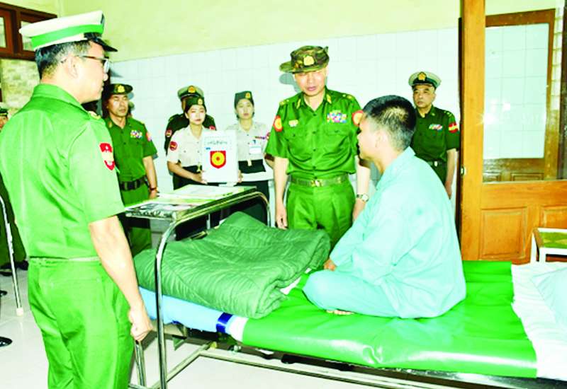 ရှမ်းပြည်နယ် (တောင်ပိုင်း) အောင်ပန်းမြို့ရှိ တပ်မတော်ဆေးရုံနှင့် ခိုလမ်မြို့ရှိ နယ်မြေခံဆေးတပ်ရင်းတို့၌ တက်ရောက်ကုသမှုခံယူလျက်ရှိသော အရာရှိ၊ စစ်သည်၊ မိသားစုများ၊ မြန်မာနိုင်ငံရဲတပ်ဖွဲ့ဝင်များ၊ ပြည်သူ့စစ် (ဌာနေ) တပ်ဖွဲ့ဝင်များ၊ စစ်မှုထမ်းဟောင်းအဖွဲ့ဝင်များနှင့် ဒေသခံပြည်သူများအား ယနေ့တွင် သက်ဆိုင်ရာတိုင်းစစ်ဌာနချုပ်များမှ တိုင်းမှူးများနှင့် တာဝန်ရှိသူများက သွားရောက်ကြည့်ရှု၍ တစ်ဦးချင်း၏ ရောဂါဖြစ်ပွားမှု၊ ဆေးဝါးကုသပေးထားမှုနှင့် ကျန်းမာရေးတိုးတက်ကောင်းမွန်မှု အခြေအနေများကို မေးမြန်းအားပေးစကားပြောကြားပြီး အာဟာရဖြည့်စားသောက်ဖွယ်ရာများနှင့် ချီးမြှင့်ငွေများပေးအပ်သည်။