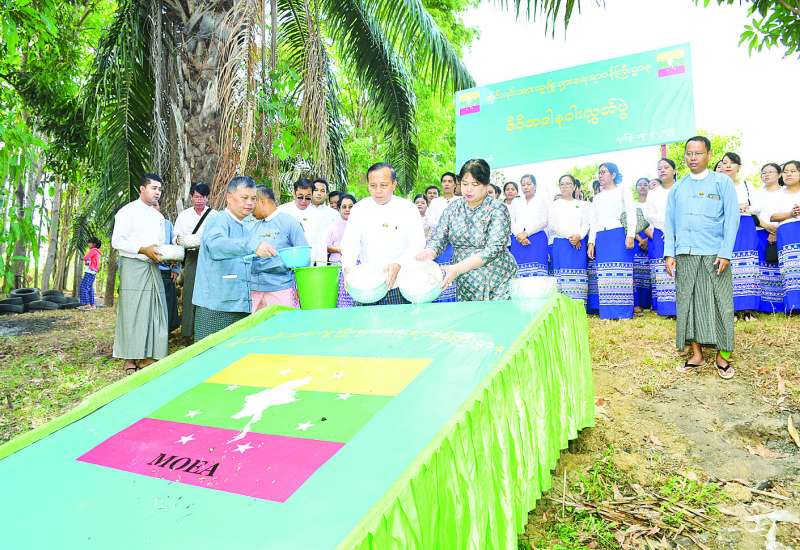 ပြည်ထောင်စု စာရင်းစစ်ချုပ်ရုံး ဇီဝိတဒါန ငါးမျိုးစိုက်ထည့်ပွဲကို ယနေ့နံနက် ၉ နာရီခွဲတွင် နေပြည်တော် ပရဆေးဥယျာဉ်ရှေ့ရှိ မင်္ဂလာကန်တော်၌ကျင်းပရာ ပြည်ထောင်စုစာရင်းစစ်ချုပ် ဒေါက်တာခင်နိုင်ဦး၊ အမြဲတမ်း အတွင်းဝန်၊ ညွှန်ကြားရေးမှူးချုပ်များနှင့် တာဝန်ရှိသူများသည် နေပြည်တော် ပရဆေးဥယျာဉ် ရှေ့ရှိ မင်္ဂလာကန်တော်အတွင်းသို့ နှစ်သစ်မင်္ဂလာအဖြစ် ငါးကြင်း သားပေါက်များ မျိုးစိုက်ထည့်ပြီး ကုသိုလ်ပြုခဲ့ကြသည်။