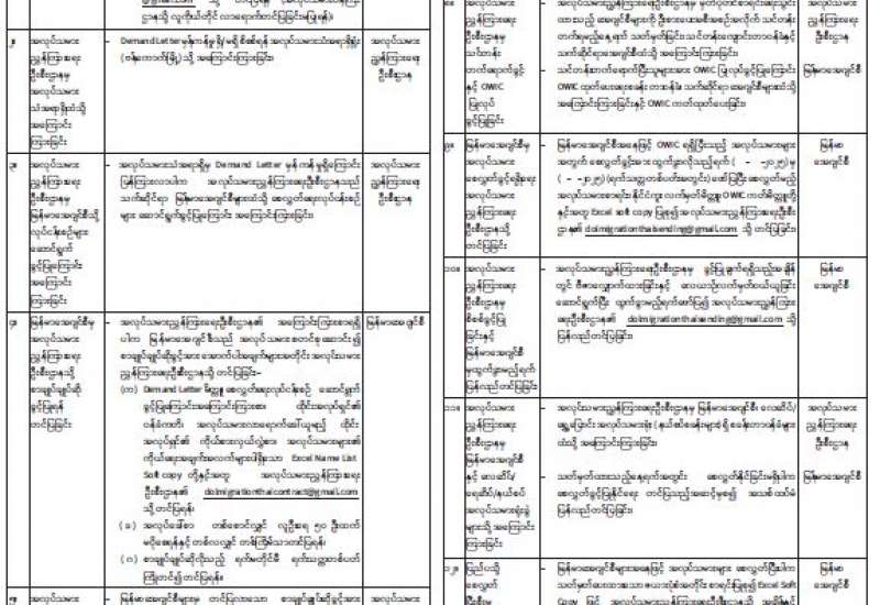 ထိုင်းနိုင်ငံသို့ မြန်မာလုပ်သားစေလွှတ်နိုင်ရေးနှင့်ပတ်သက်၍ ဆောင်ရွက်ရမည့် လုပ်ငန်းအစီအစဉ်