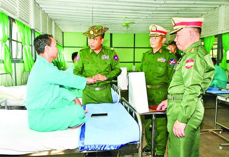 မန္တလေးတိုင်းဒေသကြီး မိတ္ထီလာမြို့ရှိ တပ်မတော်ဆေးရုံ၌ တက်ရောက်ကုသမှုခံယူလျက်ရှိသော အရာရှိ၊ စစ်သည်၊ မိသားစုများနှင့် ဒေသခံပြည်သူများကို ယနေ့တွင် အလယ်ပိုင်းတိုင်း စစ်ဌာနချုပ်တိုင်းမှူးဗိုလ်မှူးချုပ် ကျော်ကိုထိုက်နှင့် တာဝန်ရှိသူများက သွားရောက်ကြည့်ရှု၍ တစ်ဦးချင်း၏ ရောဂါဖြစ်ပွားမှု၊ ဆေးဝါးကုသပေးထားမှုနှင့် ကျန်းမာရေးတိုးတက်ကောင်းမွန် မှုအခြေအနေများကို မေးမြန်းအားပေးစကားပြောကြားပြီး အာဟာရဖြည့် စားသောက်ဖွယ်ရာများ ပေးအပ်သည်။