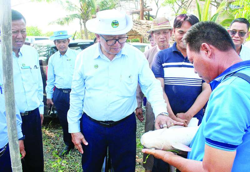 စိုက်ပျိုးရေး၊ မွေးမြူရေးနှင့် ဆည်မြောင်းဝန်ကြီးဌာန ဒုတိယဝန်ကြီး ဒေါက်တာအောင်ကြီးသည် ယမန်နေ့က ရန်ကုန်တိုင်းဒေသကြီး ထန်းတပင်မြို့နယ် ရွှေဥကျေးရွာရှိ ဟန်စိုးမိုးကုမ္ပဏီ လီမိတက်၏ ငါးမွေးမြူရေးနှင့် ငါးအစာတောင့်စက်ရုံကို ကြည့်ရှုစစ်ဆေးသည်။