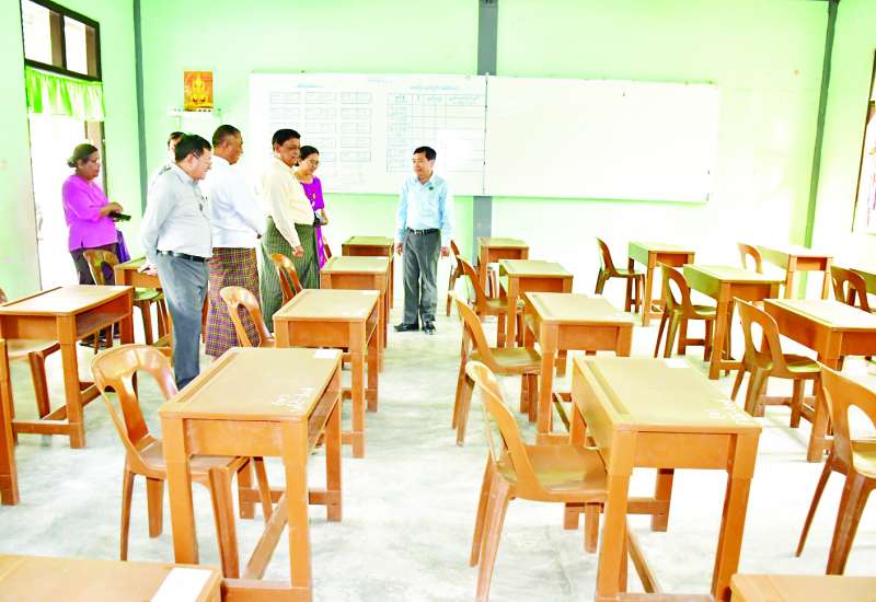 နေပြည်တော်ကောင်စီဥက္ကဋ္ဌ ဦးသန်းထွန်းဦး သည် နေပြည်တော်ကောင်စီဝင်များနှင့်အတူ ယနေ့မွန်းလွဲပိုင်းတွင် ၂၀၂၅ ခုနှစ် တက္ကသိုလ်ဝင်စာမေးပွဲအတွက် ပျဉ်းမနားမြို့နယ်နှင့် လယ်ဝေးမြို့နယ်အတွင်းရှိ စာစစ်ဌာနများတွင် စာမေးပွဲဖြေဆိုခန်းများ ပြင်ဆင်ထားရှိမှုအခြေအနေများကို ကြည့်ရှုစစ်ဆေးသည်။