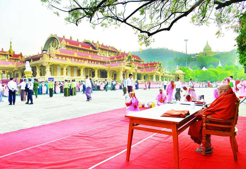 ၂၀၂၅ ခုနှစ်၊ သာသနာတော်ဆိုင်ရာ ဘွဲ့တံဆိပ်တော် ဆက်ကပ်ခံယူတော်မူမည့် ဆရာတော်ကြီးများအား နိုင်ငံတော်စီမံအုပ်ချုပ်ရေးကောင်စီဥက္ကဋ္ဌ နိုင်ငံတော်ဝန်ကြီးချုပ် ဗိုလ်ချုပ်မှူးကြီးမင်းအောင်လှိုင်နှင့်ဇနီး ဒေါ်ကြူကြူလှတို့က ယနေ့နံနက်ပိုင်းတွင် နေပြည်တော်မာရဝိဇယဗုဒ္ဓဥယျာဉ်တော် ပရိဝုဏ်အတွင်းရှိ အဂ္ဂါဓိပတိသာသနာ့ဗိမာန်တော်ကြီး၌ နေ့ဆွမ်းဆက်ကပ်လှူဒါန်းသည်။