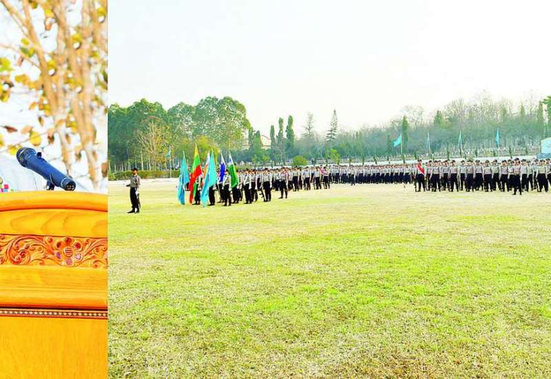 အရာထမ်းလောင်း (အထူး)သင်တန်းအမှတ်စဉ်(၁၄)နှင့် အရာထမ်းငယ်သင်တန်းအမှတ်စဉ် (၁၀၂)တို့၏ သင်တန်းဆင်းပွဲ အခမ်းအနားကို ယနေ့ နံနက် ၇ နာရီတွင် နိုင်ငံ့ဝန်ထမ်းတက္ကသိုလ် (အထက်မြန်မာပြည်) စစ်ရေးပြကွင်း၌ကျင်းပရာ ပြည်ထောင်စုရာထူးဝန်အဖွဲ့ အဖွဲ့ဝင်ဦးစိုးတင့်၊ ပါမောက္ခချုပ်ဦးကျော်စိုး၊ ဒုတိယပါမောက္ခချုပ်များ၊ ဖိတ်ကြားထားသည့် ဧည့်သည်တော်များ၊ တက္ကသိုလ်သင်ကြား၊ စီမံဌာနများမှ တာဝန်ရှိသူများနှင့် သင်တန်းသားသင်တန်းသူများ တက်ရောက်ကြသည်။
