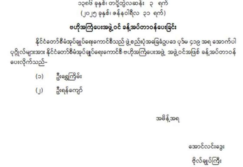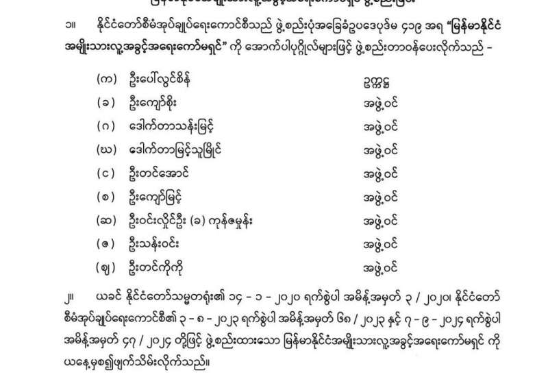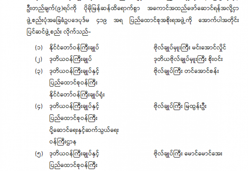 ကော်မရှင်အဖွဲ့ဝင် ခန့်အပ်တာဝန်ပေးခြင်း