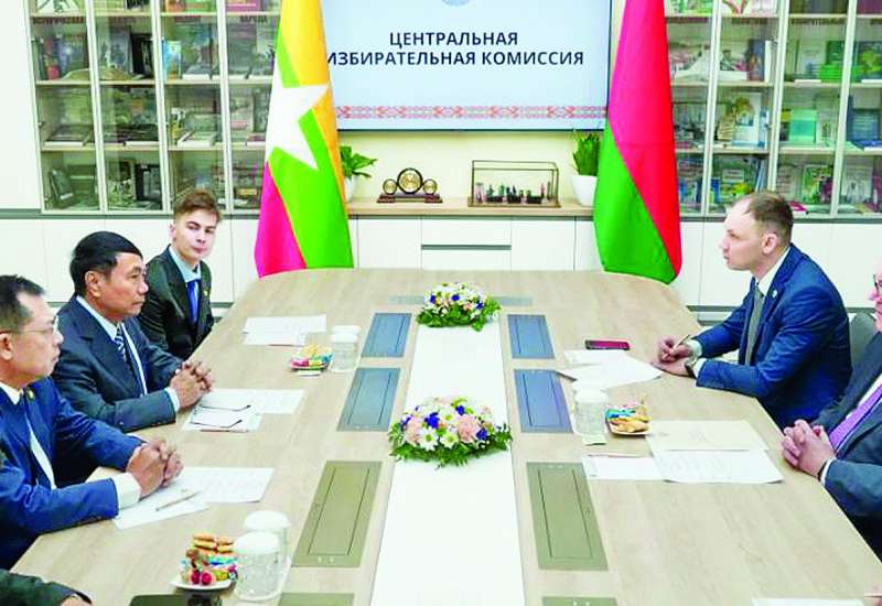 ၂၀၂၅ ခုနှစ် ဇန်နဝါရီ ၂၆ ရက်က ပြုလုပ်ခဲ့သည့် ဘယ်လာရုစ်သမ္မတရွေးကောက်ပွဲသို့ နိုင်ငံတကာစောင့်ကြည့်လေ့လာရေးအဖွဲ့အဖြစ် သွားရောက်လေ့လာခဲ့ကြသည့် ပြည်ထောင်စုရွေးကောက်ပွဲကော်မရှင်အဖွဲ့ဝင် ဦးအောင်စောဝင်းနှင့် ဦးမြင့်သိန်းတို့သည် ဇန်နဝါရီ ၂၁ ရက်မှ ၂၅ ရက်အထိ ပြုလုပ်သည့် ကြိုတင်မဲပေးခြင်းလုပ်ငန်းစဉ်များ ဆောင်ရွက်နေမှုကို လေ့လာခဲ့ပြီး ဇန်နဝါရီ ၂၄ ရက်တွင် ဘယ်လာရုစ်သမ္မတနိုင်ငံ ဗဟိုရွေးကောက်ပွဲကော်မရှင်ဥက္ကဋ္ဌ Mr. Igor Karpenko နှင့် တွေ့ဆုံဆွေးနွေးခဲ့သည်။