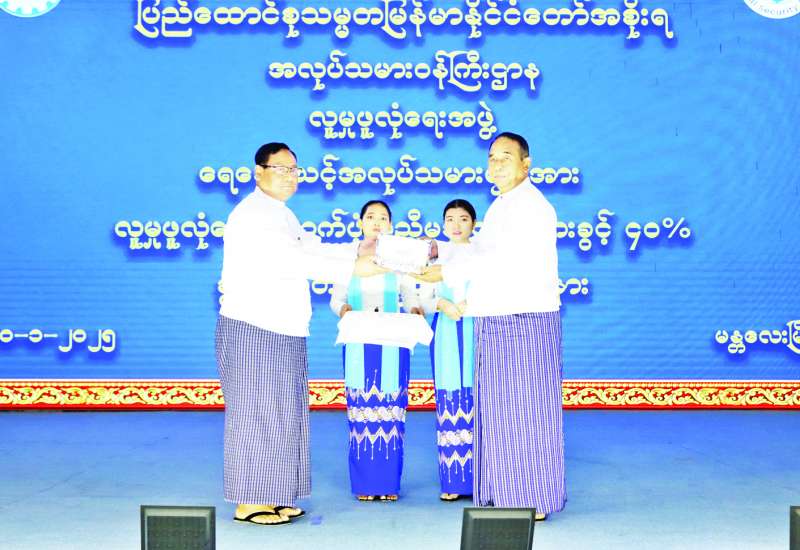 မန္တလေးတိုင်းဒေသကြီးအတွင်း လူမှုဖူလုံရေးအဖွဲ့တွင် အကျုံးဝင်မှတ်ပုံတင်ထားသော အလုပ်ဌာနများမှ ရေဘေးသင့်အာမခံအလုပ်သမားများအား လူမှုဖူလုံရေးကူညီမှု အကျိုးခံစားခွင့် ၄၀ ရာခိုင်နှုန်း ခွင့်ပြုထုတ်ပေးရန် မန္တလေးတိုင်းဒေသကြီး ဝန်ကြီးချုပ်ထံလွှဲပြောင်းပေးအပ်ခြင်း အခမ်းအနားကို ယနေ့နံနက်ပိုင်းတွင် မန္တလေးမြို့ စည်ပင်သာယာရေးကော်မတီ မြို့တော်ခန်းမ၌ ကျင်းပသည်။