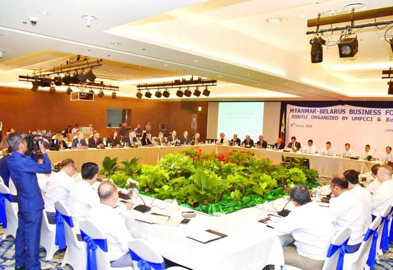 နိုင်ငံတော်စီမံအုပ်ချုပ်ရေးကောင်စီဝင် ဗိုလ်ချုပ်ကြီးညိုစောသည် ယနေ့နံနက်ပိုင်းတွင် ရန်ကုန်မြို့ Lotte Hotel ၌ ကျင်းပသည့် Myanmar – Belarus Business Forum သို့ တက်ရောက်အားပေးသည်။