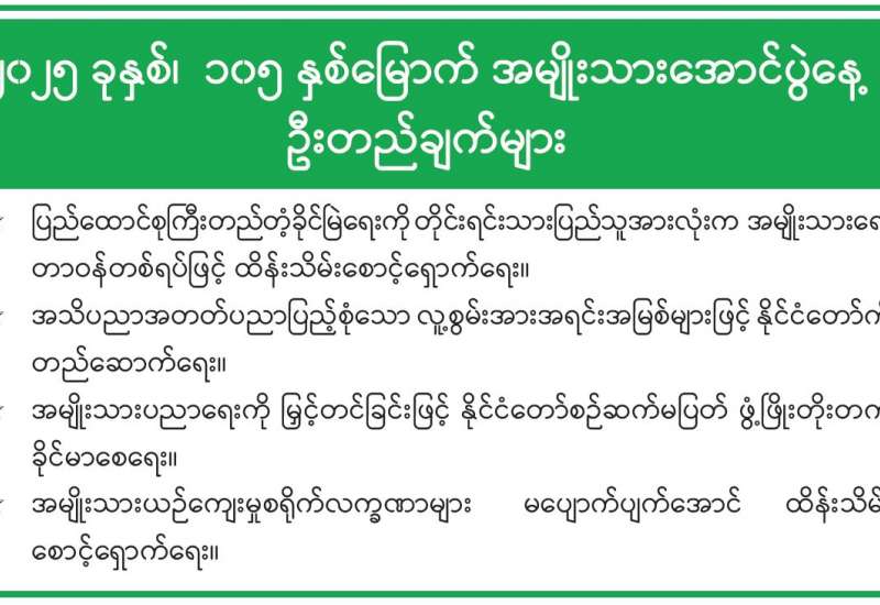 ၂၀၂၅ ခုနှစ်၊ ၁၀၅ နှစ်မြောက် အမျိုးသားအောင်ပွဲနေ့ ဦးတည်ချက်များ