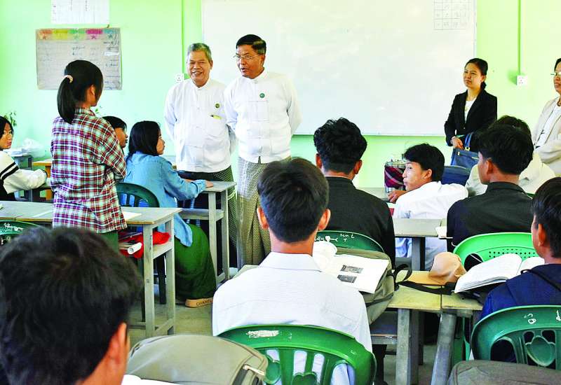 ပြန်ကြားရေးဝန်ကြီးဌာန ဒုတိယဝန်ကြီး ဦးရဲတင့်သည် ယနေ့နံနက်ပိုင်းက ချောက်မြို့နယ် ဂွေးချိုကျေးရွာ အခြေခံပညာနှင့် စက်မှုစိုက်ပျိုးမွေးမြူရေးအထက်တန်းကျောင်းသို့ ရောက်ရှိပြီး ကျောင်းသား ကျောင်းသူများ ပညာသင်ကြားနေမှုများကို လိုက်လံကြည့်ရှုအားပေးသည်။