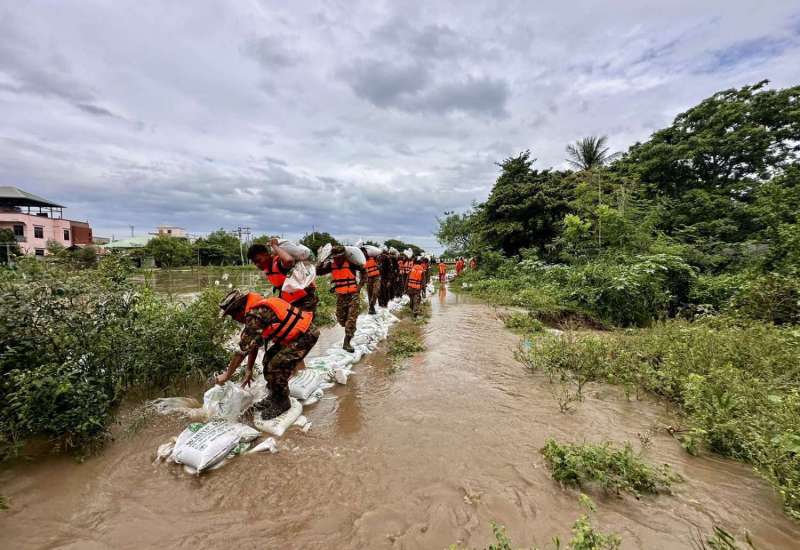 မန္တလေးတိုင်းဒေသကြီး၊ ကျောက်ဆည်ခရိုင်၊ ကျောက်ဆည်မြို့နယ်တွင် စက်တင်ဘာ ၁၀ ရက်နေ့က မိုးသည်းထန်စွာရွာသွန်းမှုကြောင့် ဇော်ဂျီမြစ်ရေများလျှံတက်လျက်ရှိရာ ယမန်နေ့နံနက်ပိုင်းတွင် ကျောက်ဆည်ခရိုင် သဘာဝဘေးကယ်ဆယ်ရေးအဖွဲ့မှ ကြက်မင်းတွန်ရပ်ကွက်အတွင်း ဇော်ဂျီမြစ်ရေ ဝင်ရောက်မှုမရှိစေရေး သဲအိတ်ဖို့ခြင်းများ ဆောင်ရွက်လျက်ရှိကြောင်း သိရသည်။