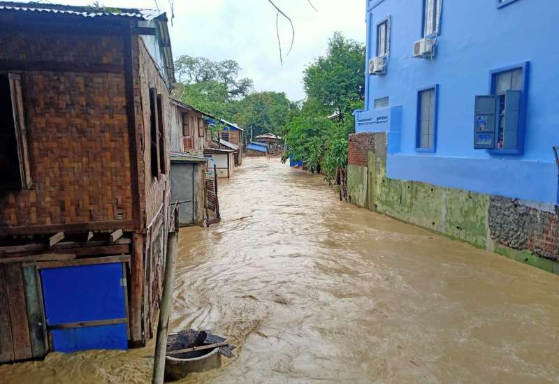 ရှမ်းပြည်နယ်တောင်ပိုင်း၊ နမ့်စန်ခရိုင်၊ နမ့်စန်မြို့နယ်တွင် မိုးအဆက်မပြတ်ရွာသွန်းမှုကြောင့် နမ့်စန်မြို့တွင်း ဖြတ်သန်းစီးဆင်းနေသော နမ့်လတ်ချောင်းရေလျှံကာ ယမန်နေ့နံနက် ၄ နာရီခန့်မှစတင်၍ ချောင်းအနီးဝန်းကျင်နှင့် အနိမ့်ပိုင်းလူနေအိမ်များအတွင်း ရေများဝင်ရောက်ခဲ့ကြောင်း သိရသည်။