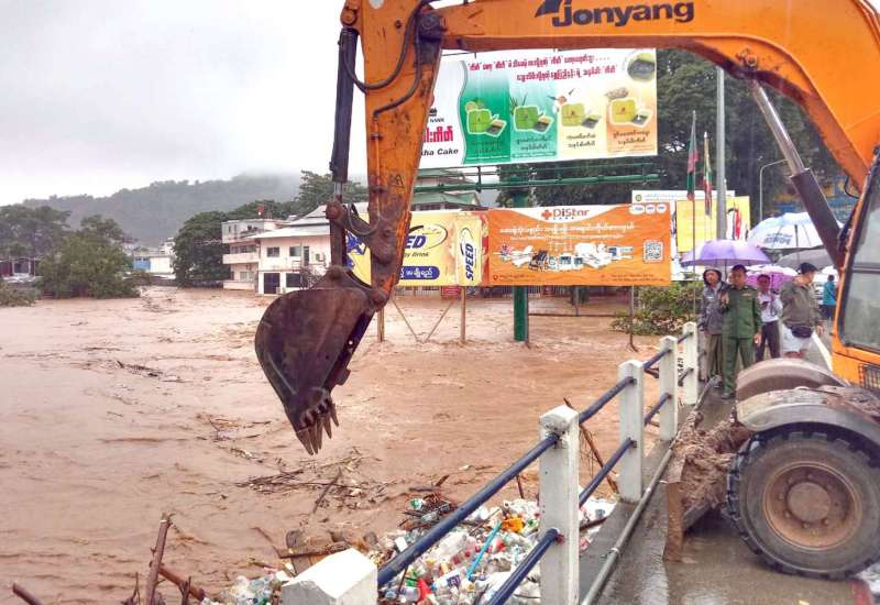 တာချီလိတ်မြို့၌ ယနေ့ မွန်းတည့် (၁၂)နာရီ တိုင်းတာချက်အရ မယ်ဆိုင်ချောင်းရေသည် စိုးရိမ်ရေမှတ်အထက် (၂၉၀) စင်တီမီတာ (၆) ပေကျော်သို့ရောက်ရှိနေပြီး မြန်မာ-ထိုင်းချစ်ကြည်ရေးတံတားအမှတ်(၁) အဝင်လမ်းရေကျော်ခြင်းနှင့် မြို့ပေါ်ရပ်ကွက်(၈)ရပ်ကွက်ရှိ လူဦးရေ (၃၈၃၈)ဦးသည် ရေဘေးကြုံတွေ့နေရသဖြင့် ကူညီကယ်ဆယ်ရေးလုပ်ငန်းများ အရှိန်မြှင့်ဆောင်ရွက်ပေးလျက်ရှိကြောင်း သိရသည်။