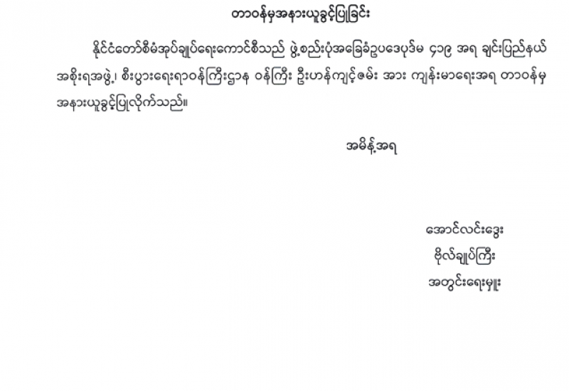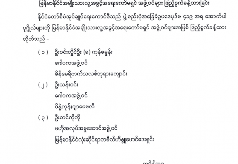 မြန်မာနိုင်ငံအမျိုးသားလူ့အခွင့်အရေးကော်မရှင် အဖွဲ့ဝင်များ ဖြည့်စွက်ခန့်ထားခြင်း
