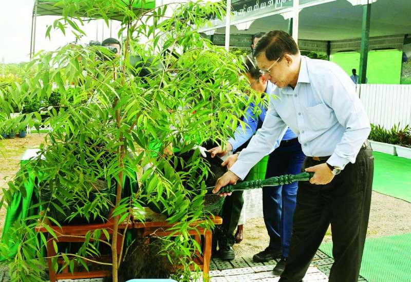 ပြည်ထောင်စုနယ်မြေ၊ နေပြည်တော်၊ ၂၀၂၄ ခုနှစ်၊ တတိယအကြိမ် မိုးရာသီသစ်ပင်စိုက်ပျိုးပွဲအခမ်းအနားကို ယနေ့နံနက်ပိုင်းတွင် ပြည်ထောင်စုနယ်မြေ နေပြည်တော်၊ လယ်ဝေးမြို့နယ်၊ ရန်အောင်မြင်ကြိုးဝိုင်း၊ အကွက်အမှတ်(၁၆)၌ ကျင်းပရာ နိုင်ငံတော်စီမံအုပ်ချုပ်ရေးကောင်စီဥက္ကဋ္ဌ နိုင်ငံတော်ဝန်ကြီးချုပ် ဗိုလ်ချုပ်မှူးကြီး မင်းအောင်လှိုင် တက်ရောက်၍ ကံ့ကော်ပျိုးပင်ကို ဦးဆောင်စိုက်ပျိုးပေးသည်။