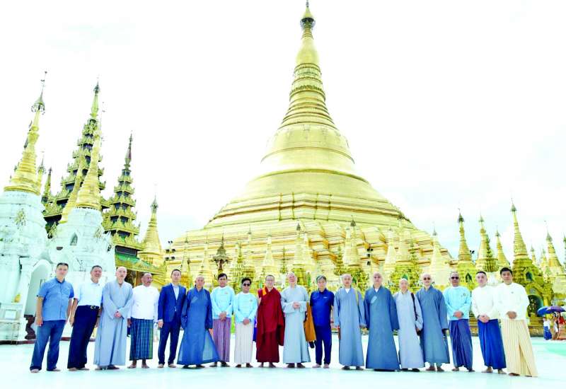 မြန်မာ-တရုတ် “ဆွေမျိုးပေါက်ဖော်” ချစ်ကြည်ရေး ရေရှည်တည်တံ့ခိုင်မြဲစေရန်နှင့် ဗုဒ္ဓဘာသာဝင်များအကြား ချစ်ကြည်ရင်းနှီးမှုဖလှယ်ရန် ရည်ရွယ်ချက်များဖြင့် မြန်မာတရုတ်ချစ်ကြည်ရေးအသင်း (ဗဟို)၏ ဖိတ်ကြားစီစဉ်မှုအရ တရုတ်ပြည်သူ့သမ္မတနိုင်ငံပေကျင်းမြို့ ဗုဒ္ဓဘာသာအသင်းမှ ဥက္ကဋ္ဌဆရာတော် Hu Xuefeng ဦးဆောင်၍ ဗုဒ္ဓဘာသာဗျူရိုမှ အဖွဲ့ဝင်များပါဝင်သော ဧည့်သည်တော်အဖွဲ့သည် ယနေ့နံနက် ၈ နာရီခွဲတွင် ရွှေတိဂုံစေတီတော်မြတ်ကြီးသို့ လာရောက်ဖူးမြော်ရာ မြန်မာ-တရုတ်ချစ်ကြည် ရေးအသင်း (ဗဟို) ဥက္ကဋ္ဌ ဦးတင်ဦးနှင့်အဖွဲ့ဝင်များ၊ ရွှေတိဂုံစေတီတော် ဘဏ္ဍာတော်ထိန်းဂေါပကအဖွဲ့ အလှည့်ကျသဘာပတိ ဦးညွန့်သင်းနှင့် ဘဏ္ဍာတော် ထိန်းဂေါပကအဖွဲ့ဝင်များ၊ ရန်ကုန်တိုင်းဒေသကြီး သာသနာရေးမှူး ဦးဇော်ဦးတို့က ကြိုဆိုဂါရဝပြုနှုတ်ဆက်ကြသည်။