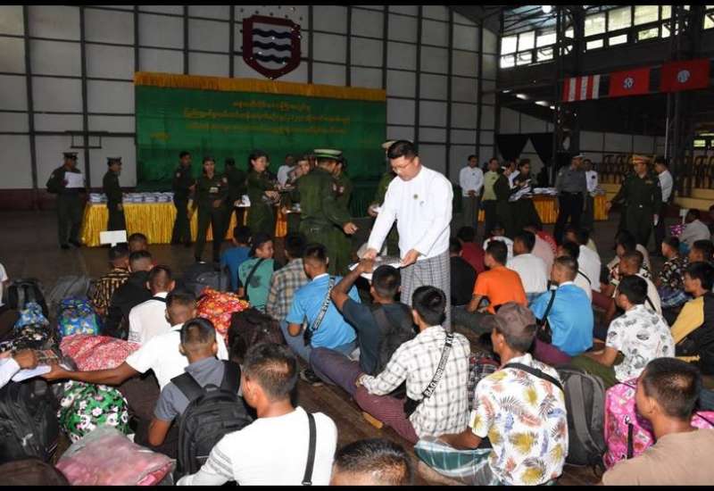 ဧရာဝတီတိုင်းဒေသကြီးအတွင်းမှ ပြည်သူ့စစ်မှုထမ်းသင်တန်း အမှတ်စဉ် (၅/၂၀၂၄) သို့ တက်ရောက်မည့် နိုင်ငံ့သားကောင်းရတနာများအား ယနေ့တွင် အနောက်တောင်တိုင်းစစ်ဌာနချုပ် တပ်နယ်စားကစားရုံ၌ တိုင်းဒေသကြီးဝန်ကြီးချုပ် ဦးတင်မောင်ဝင်း၊ တိုင်းမှူးဗိုလ်ချုပ်ဝေလင်းနှင့် တာဝန်ရှိသူများက သွားရောက်တွေ့ဆုံအမှာစကားပြောကြားသည်။