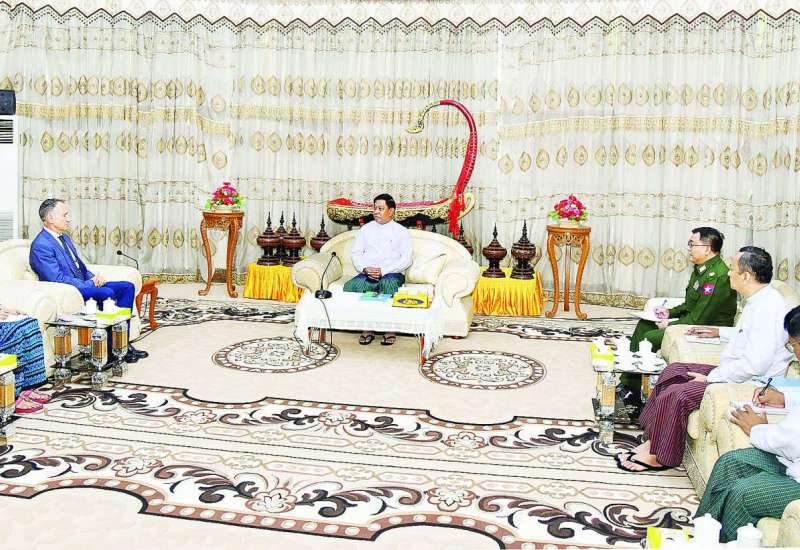 နိုင်ငံတော်စီမံအုပ်ချုပ်ရေးကောင်စီအဖွဲ့ဝင်၊ ဒုတိယဝန်ကြီးချုပ်နှင့် ကာကွယ်ရေးဝန်ကြီးဌာန ပြည်ထောင်စုဝန်ကြီး ဗိုလ်ချုပ်ကြီးတင်အောင်စန်းသည် မြန်မာနိုင်ငံဆိုင်ရာ ကုလသမဂ္ဂယာယီဌာနေ ညှိနှိုင်းရေးမှူးနှင့် လူသားချင်းစာနာထောက်ထားမှုဆိုင်ရာ ယာယီညှိနှိုင်းရေးမှူးဖြစ်သူ Mr. Marcoluigi Corsi ကို ယနေ့နံနက်ပိုင်းတွင် ပြည်ထောင်စုဝန်ကြီးရုံး ဧည့်ခန်းမ၌လက်ခံတွေ့ဆုံသည်။