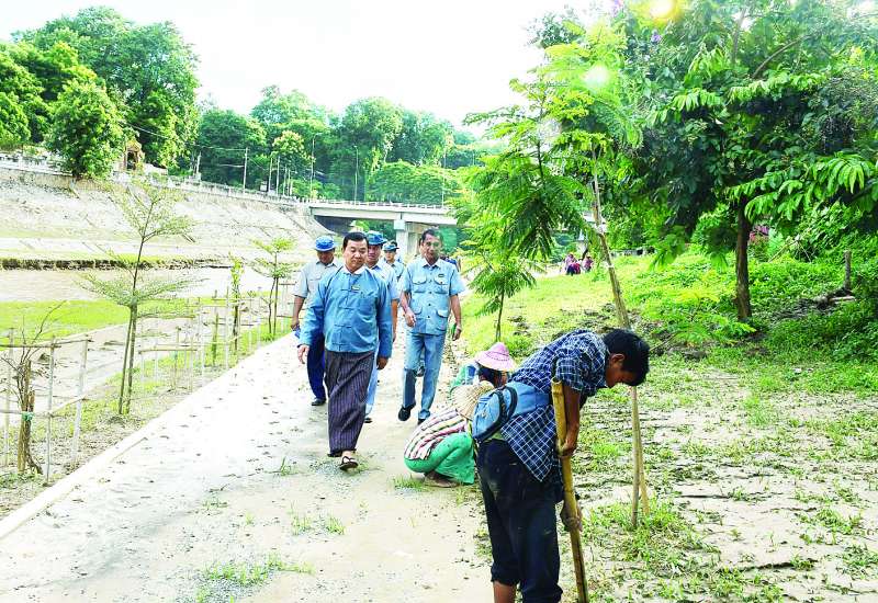 နေပြည်တော်စည်ပင်သာယာရေးကော်မတီ ဒုတိယဥက္ကဋ္ဌ၊ ဒုတိယမြို့တော်ဝန် ဦးမောင်မောင်သည် ယမန်နေ့မွန်းလွဲပိုင်းက ပျဉ်းမနားမြို့ ငလိုက်ချောင်းတံတားသို့သွားရောက်၍ ယာယီရေလျှံမှု ဖြစ်ပေါ်ခဲ့ခြင်းကြောင့် ချောင်းကမ်းပါးတွင် စိုက်ပျိုးထားရှိသည့် နှစ်ရှည်ပင်နှင့် အလှပန်းပင်များ၊ မြေယာရှုခင်းများ ရေနစ်မြုပ်ကာ ထိခိုက်ပျက်စီးခဲ့မှုများကို ပြန်လည်ပြုပြင်ထိန်းသိမ်းရေးဆောင်ရွက်နေမှုကို ကြည့်ရှုစစ်ဆေးသည်။