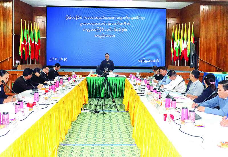 မြန်မာနိုင်ငံ ကလေးအလုပ်သမားပပျောက်ရေးဆိုင်ရာ ဥပဒေရေးရာလုပ်ငန်းကော်မတီ သတ္တမအကြိမ် လုပ်ငန်းညိနှိုင်းအစည်းအဝေးကို ယနေ့မွန်းလွဲ ၁ နာရီတွင် ဥပဒေရေးရာဝန်ကြီးဌာနရှိ မြေညီထပ်အစည်းအဝေးခန်းမ၌ Hybrid Format ဖြင့် ကျင်းပရာ မြန်မာနိုင်ငံ ကလေးအလုပ်သမားပပျောက်ရေးဆိုင်ရာ ဥပဒေရေးရာလုပ်ငန်းကော်မတီဥက္ကဋ္ဌ၊ ဥပဒေရေးရာဝန်ကြီးဌာန၊ ဒုတိယဝန်ကြီးနှင့်ဒုတိယရှေ့နေချုပ် ဒေါက်တာထိန်လင်းဦး တက်ရောက်အမှာစကားပြောကြားသည်။