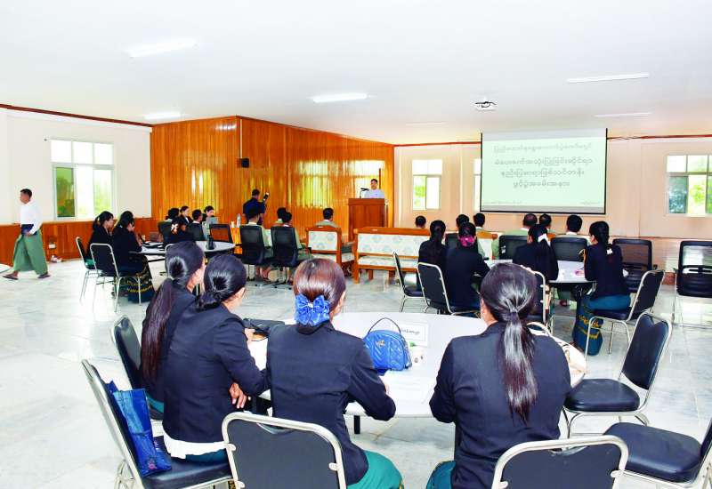 ဗဟိုသန်းခေါင်စာရင်းကော်မရှင်ဥက္ကဋ္ဌ လူဝင်မှုကြီးကြပ်ရေးနှင့်ပြည်သူ့အင်အားဝန်ကြီးဌာန ပြည်ထောင်စုဝန်ကြီး ဦးမြင့်ကြိုင်သည် ဒုတိယဝန်ကြီး ဦးဌေးလှိုင်၊ တာဝန်ရှိသူများနှင့်အတူ ယနေ့နံနက်ပိုင်းတွင် နေပြည်တော်ကောင်စီနယ်မြေ ဇမ္ဗူသီရိမြို့နယ် အထွေထွေအုပ်ချုပ်ရေးဦးစီးဌာနသင်တန်းခန်းမ၌ ဖွင့်လှစ်လျက်ရှိသည့် ပြည်ထောင်စုနယ်မြေ တိုင်းအဆင့်နည်းပြသင်တန်းသို့ သွားရောက်ကြည့်ရှုအားပေးသည်။