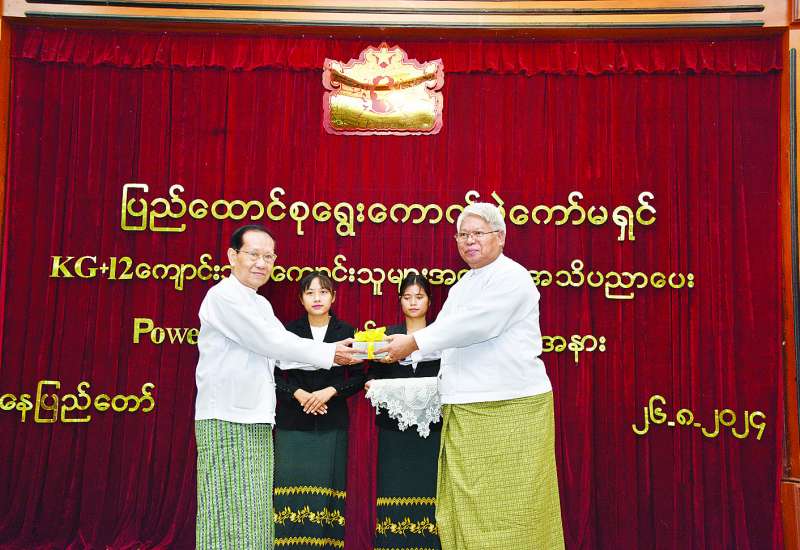 ပထမအကြိမ်မဲပေးမည့် လူငယ်မဲဆန္ဒရှင်များအုပ်စုတွင် အကျုံးဝင်နေသော ကျောင်းသား၊ ကျောင်းသူများအတွက် ဖွဲ့စည်းပုံအခြေခံဥပဒေ (၂၀၀၈ ခုနှစ်)နှင့် ပြည်ထောင်စုရွေးကောက်ပွဲကော်မရှင်ဥပဒေဆိုင်ရာ မဲဆန္ဒရှင်အသိပညာပေး PowerPoint အား ပြည်ထောင်စုရွေးကောက်ပွဲကော်မရှင်က ပညာရေးဝန်ကြီးဌာနသို့ အပ်နှင်းသည့်အခမ်းအနားကို ယနေ့နံနက် ၉ နာရီခွဲတွင် ပြည်ထောင်စုရွေးကောက်ပွဲကော်မရှင်ရုံး အစည်းအဝေးခန်းမ၌ ကျင်းပသည်။