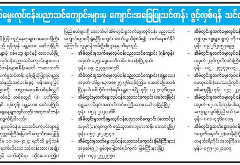 နိုင်ငံရေးပါတီတည်ထောင်လိုသူများက ယင်းတို့တည်ထောင်လိုသော ပါတီအမည်ကိုဖော်ပြ၍ ပြည်ထောင်စုရွေးကောက်ပွဲကော်မရှင်သို့ လျှောက်ထားလျက်ရှိကြရာ ယနေ့အထိ ပါတီတည်ထောင်ခွင့်လျှောက်ထားလာသည့်အဖွဲ့ ၁၇ ဖွဲ့ရှိပြီး ယင်းသို့လျှောက်ထားသည့်အဖွဲ့များအနက် ညီညွတ်ရေးနှင့်ဖွံ့ဖြိုးတိုးတက်ရေးပါတီနှင့် လူမှုစီးပွားမြှင့်တင်ရေးပါတီတို့သည် နိုင်ငံရေးပါတီများ မှတ်ပုံတင်ခြင်းဥပဒေ၊ နည်းဥပဒေများနှင့် ညီညွတ်ကြောင်းစိစစ်တွေ့ရှိရသဖြင့် ကော်မရှင်က ယနေ့တွင် နိုင်ငံရေးပါတီတည်ထောင်ခွင့်လျှောက်ထားချက်များကို ခွင့်ပြုလိုက်ကြောင်း သိရှိရသည်။
