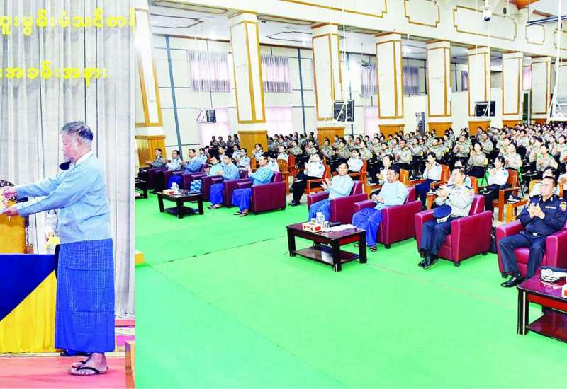 နိုင်ငံတော်စီမံအုပ်ချုပ်ရေးကောင်စီဥက္ကဋ္ဌ တပ်မတော်ကာကွယ်ရေးဦးစီးချုပ် ဗိုလ်ချုပ်မှူးကြီး မင်းအောင်လှိုင်သည် နိုင်ငံတော်စီမံအုပ်ချုပ်ရေးကောင်စီအဖွဲ့ဝင် ညှိနှိုင်းကွပ်ကဲရေးမှူး(ကြည်း၊ ရေ၊ လေ) ဗိုလ်ချုပ်ကြီး မောင်မောင်အေး၊ ကာကွယ်ရေးဦးစီးချုပ်(ရေ) ဒုတိယဗိုလ်ချုပ်ကြီး ထိန်ဝင်း၊ ကာကွယ်ရေးဦးစီးချုပ်(လေ) ဗိုလ်ချုပ်ကြီးထွန်းအောင်၊ ပြည်ထောင်စုအဆင့်ပုဂ္ဂိုလ်များ၊ ကာကွယ်ရေးဦးစီးချုပ်ရုံးမှ အဆင့်မြင့်တပ်မတော်အရာရှိကြီးများနှင့် တာဝန်ရှိသူများလိုက်ပါ၍ ယနေ့နံနက်ပိုင်းတွင် အလယ်ပိုင်းတိုင်းစစ်ဌာနချုပ်နယ်မြေအတွင်း နယ်မြေတည်ငြိမ်အေးချမ်းရေးဆိုင်ရာ ဆောင်ရွက်ထားရှိမှုများကို စစ်ဆေးသည်။