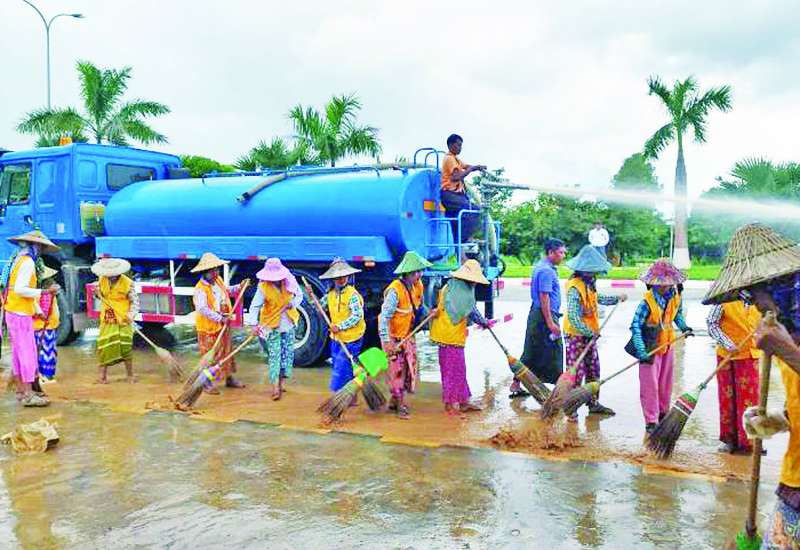 နေပြည်တော်စည်ပင်သာယာရေးကော်မတီ ဒုတိယဥက္ကဋ္ဌ၊ ဒုတိယမြို့တော်ဝန် ဦးမောင်မောင်သည် ၂၀၂၄ ခုနှစ် ဩဂုတ် ၂၅ ရက်နံနက်ပိုင်းက ကော်မတီဝင်များဖြစ်ကြသော ဦးထွန်းထွန်းနှင့် ဦးခွန်နေထွန်းဦး၊ သက်ဆိုင်ရာဌာနကြီးမှူးနှင့် ဌာနမှူးများ၊ တာဝန်ရှိသူများနှင့်အတူ ဇမ္ဗူသီရိမြို့နယ် မင်္ဂလာသိဒ္ဓိရပ်ကွက် ကန်အမှတ် (၁) အနီး ဝန်ထမ်းအိမ်ရာပတ်ဝန်းကျင်ရှိ ရေမြောင်းများနှင့် အဓိကရေထွက်ပေါက်နေရာအား နေပြည်တော်စည်ပင်သာယာရေးကော်မတီမှ လုပ်သားနှင့် စက်ယန္တရားများဖြင့် သဲနုန်းများဆယ်ယူရှင်းလင်းခြင်း၊ မြက်ချုံနှင့်သစ်ကိုင်းများ ခုတ်ထွင်ရှင်းလင်းခြင်း၊ ကားလမ်းမပေါ်သို့ ရေတင်ရေဝပ်ခြင်းများမရှိစေရေး ရေဆင်းမြောင်းများ ရေစီးရေလာပိုမိုကောင်းမွန်ရန်အတွက် တူးဖော်ရှင်းလင်းခြင်း လုပ်ငန်းဆောင်ရွက်နေမှုအခြေအနေများကို ကြည့်ရှုစစ်ဆေးပြီး လိုအပ်သည်များပေါင်းစပ်ညှိနှိုင်းဆောင်ရွက်ပေးသည်။
