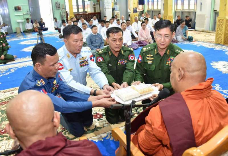 တပ်မတော် (ကြည်း၊ ရေ၊ လေ) မိသားစုများနှင့် စေတနာရှင်ပြည်သူများက ဆွမ်းဆန်တော်၊ ဆီ၊ ဆား၊ ပဲ၊ ဆေးနှင့်ဆွမ်းပဒေသာပင် အလှူငွေများလှူဒါန်းပွဲကို ယနေ့မွန်းလွဲပိုင်းက နေပြည်တော်၊ ပျဉ်းမနားမြို့၊ မဟာဝိသုတာရာမဈေးကုန်းကျောင်းတိုက်၌ ကျင်းပသည်။